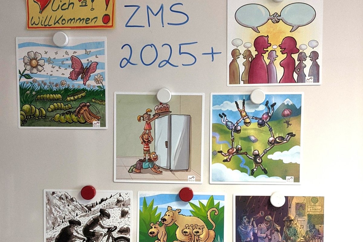 Aber damit nicht genug! Weil Annemarie Zimmer aus privaten Gründen seit Januar 2025 ihre Stunden reduziert hat (80%), durfte auch hier eine Nachfolge her! Sie ist bei uns am Zentrum die Organisations-Fee, die mit unermüdlichem Einsatz die sehr komplexen Abstimmungsprozesse hinter unseren 250 Veranstaltungen im Jahr wuppt. Hier war klar – nach der Reduktion muss Unterstützung her. Ein großer Glücksgriff war die nahtlose Übergabe der frei gewordenen 20% an Meike Lehmann, die die Ein-Tages-Stelle mit Freude besetzt und einen DHBW-Background und sogar ZMS-Wissen mitbringt.