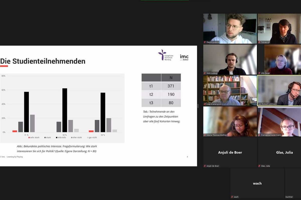 Lernen Studierende in Planspielen mehr als in Vorlesungen? Ja, sagen Dr. Robert Lohmann und Prof. Dr. Uwe Kranenpohl. In ihrer fortlaufenden quasiexperimentellen Langzeitstudie, mit der sie den Wissenserwerb in Planspielen mit dem Wissenserwerb in Vorlesungen vergleichen, kommen sie zu diesem Ergebnis. Gibt es eine App, die der Planspielleitung sämtliche Arbeit abnimmt? Wahrscheinlich nicht. Dennoch erforscht Alexander Gerwitz, wie eine App aussehen könnte, die Planspielleitungen bei der Durchführung von Planspielen unterstützt, damit sie sich stärker den eigentlich pädagogischen Aufgaben widmen kann. Wir danken den Referenten beim fünten Planspiel-Forschungs-Froum für ihre Überlegungen und Einblicke in ihre Arbeit!