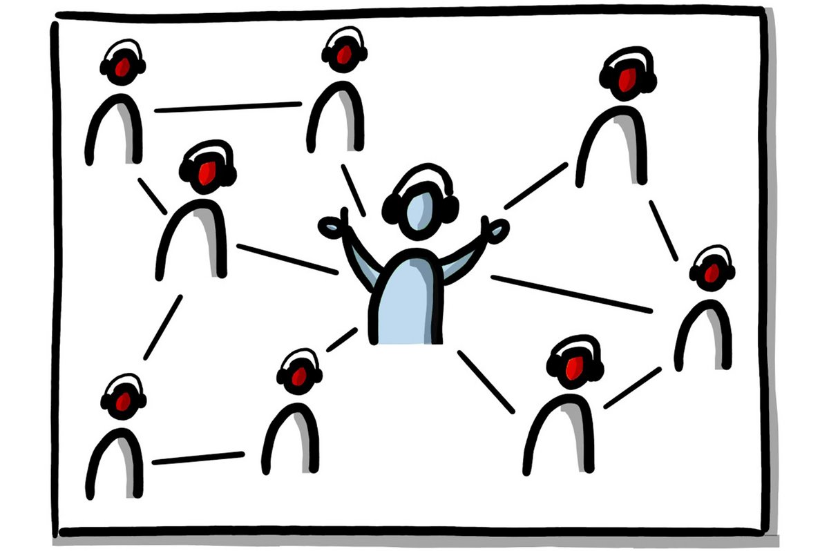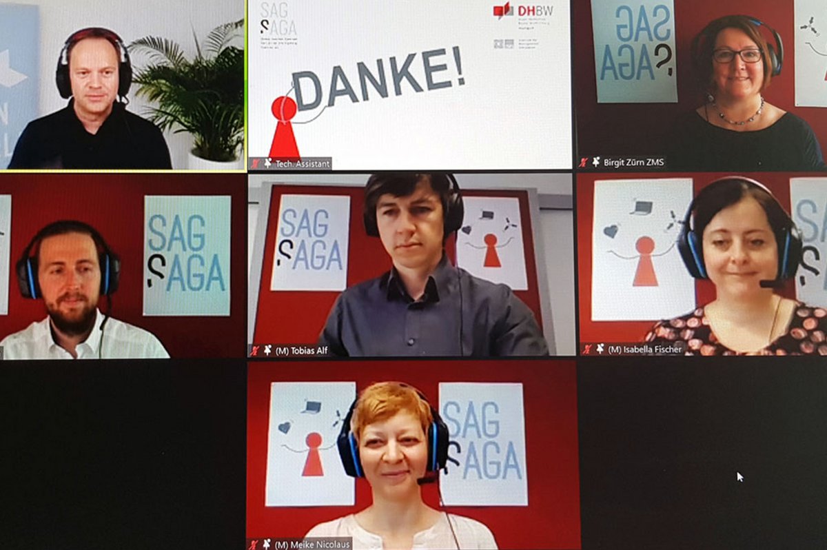 Zum Abschluss noch ein Blick hinter die Kulissen: Wir waren auf zwei Standorte verteilt, Daniel und Sebastian in ihrer Firma in Fellbach und das Team vom ZMS in Stuttgart. Die Schaltzentrale betreuten Meike und Isabella, die alle sechs parallelen Zoom-Sessions im Auge hatten.
