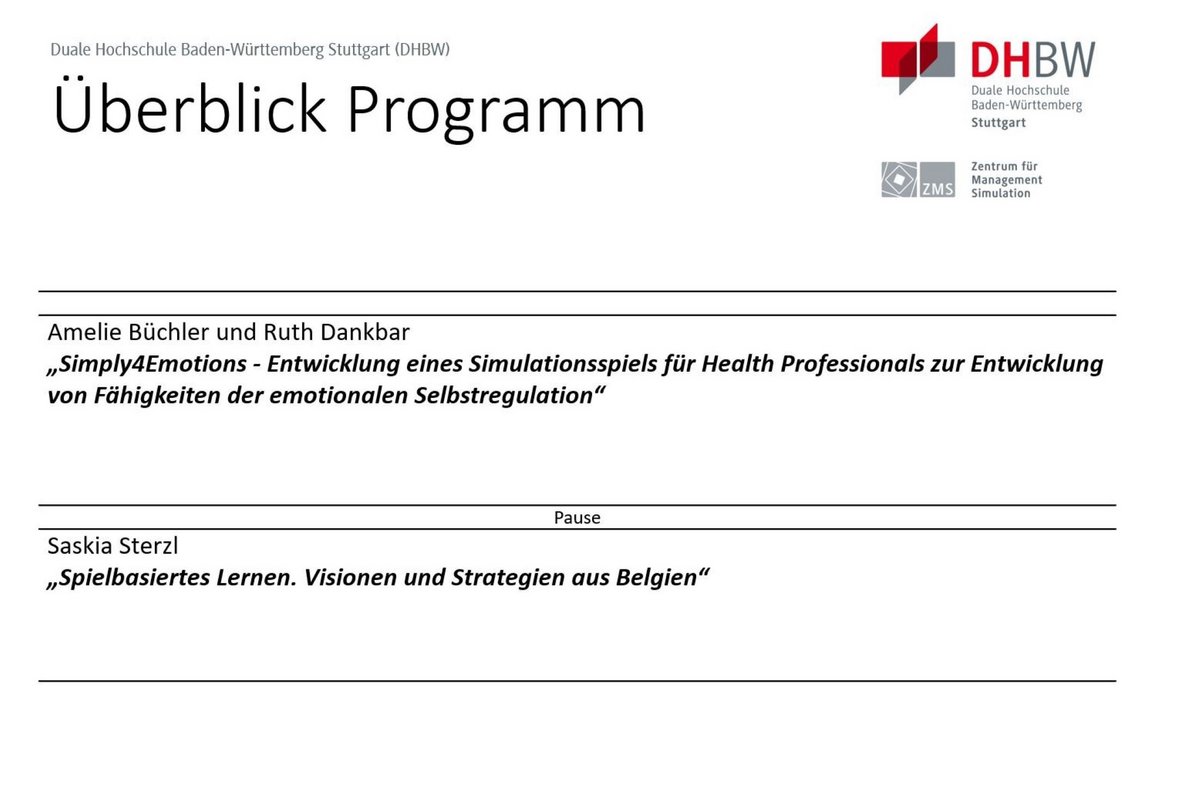 Im Projekt Simply4Emotions entwickelt ein internationales Projektteam ein Spiel, mit dessen Hilfe Pflege- und Gesundheitsfachkräfte in ihrer Fähigkeit der emotionalen Selbstregulierung unterstützt werden sollen. Wie aber gelingt es Inhalte (emotionale Selbstregulierung, emotionale Trigger etc.) kongruent in einem Spiel abzubilden? Amelie Büchler und Ruth Dankbar gaben einen intensiven Einblick in die „Übersetzungsarbeit“ von Inhaltselement zu Spielmechanismus.
